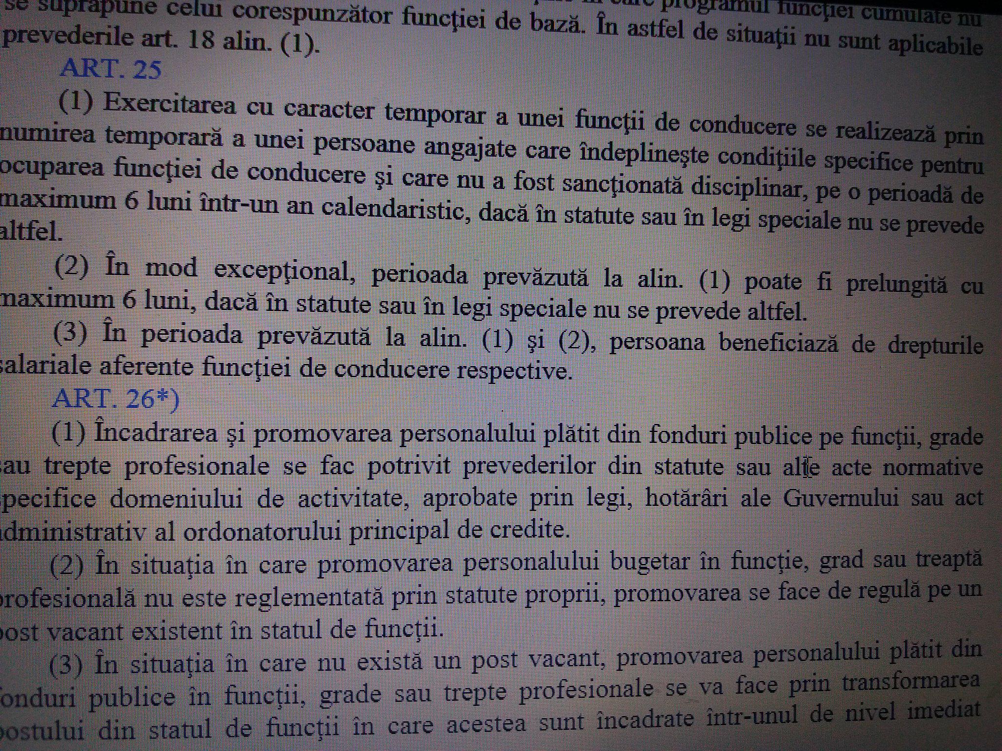 In concluzie, legea cu care se sterge la fund primarul “care este” Adrian Dobre specifica in mod clar si imperativ “exercitarea cu caracter temporar a unei funcţii de conducere se realizează prin  numirea temporară a unei persoane angajate care îndeplineşte condiţiile specifice pentru  ocuparea funcţiei de conducere şi care nu a fost sancţionată disciplinar, pe o perioadă de maximum 6 luni într-un an calendaristic, dacă în statut sau în legi speciale nu se prevede  altfel”.