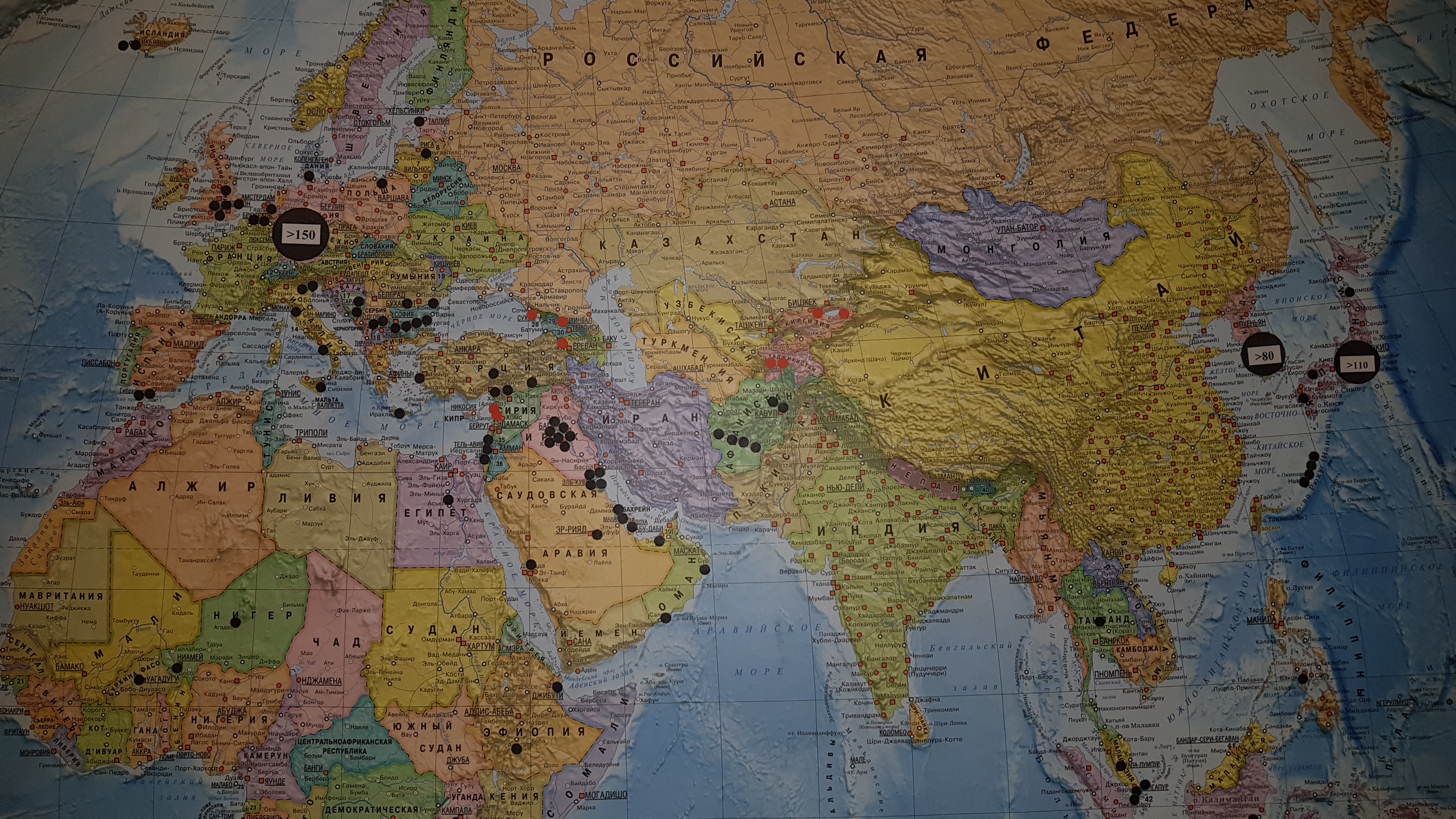 - Putem vedea harta din dreapta Dvs, unde observăm că Federația Rusă este înconjurată de puncte negre și roșii. Ne permiteți să fotografiem aceasta imagine? Ați putea să ne explicați ce reprezintă această harta și care este semnificația acestor simboluri?