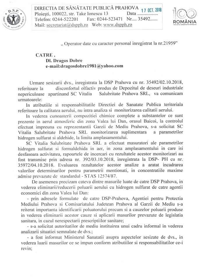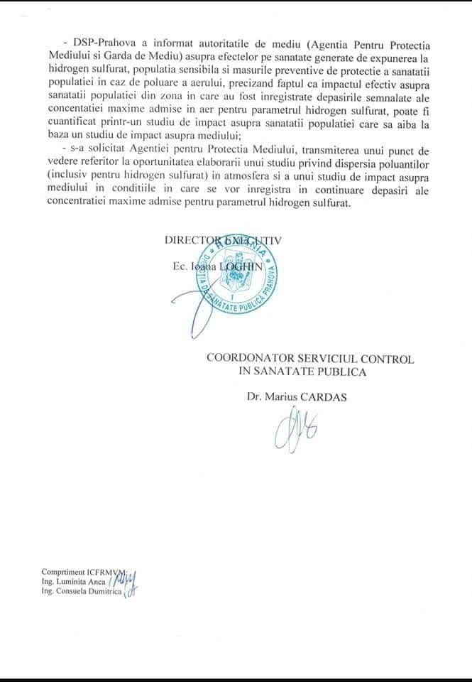 - Să notifice Agenția pentru Protecția Mediului Prahova în vederea stabilirii obligațiilor de mediu pentru închiderea depozitului.”
