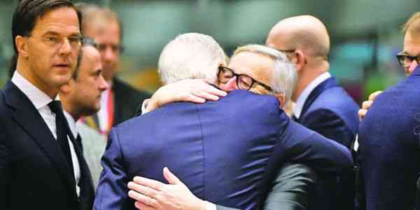 Juncker si negociatorul UE, Michel Barnier, albiti de 17 luni de negocieri dure
