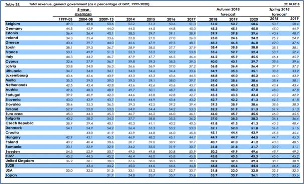 Finanţele publice arată asimetrii puternice faţă de media UE28 în condiţiile în care ponderea veniturilor bugetare în PIB în România este prognozată la 31,8% în 2018 faţă de media UE28 de 44,8%. Din cauza acestei situaţii, orice creştere de cheltuieli pare mare, oricum România având şi la acest capitol o pondere de 35,1% din PIB estimată pentru 2018, cu mai mult de 10 puncte procentuale sub media UE28 de 45,5% din PIB.