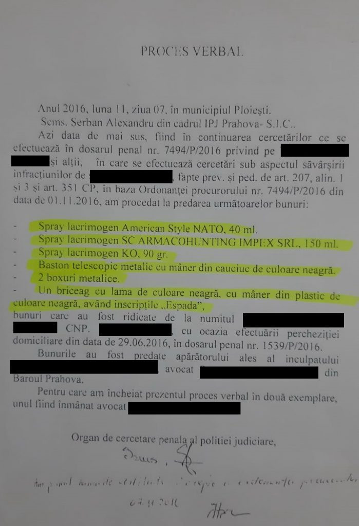 - detinem un proces-verbal de perchezitie domiciliara incheiat in 29.06.2016 din care rezulta fara echivoc bunurile ridicate (pe care il atasam prezentei solicitari).