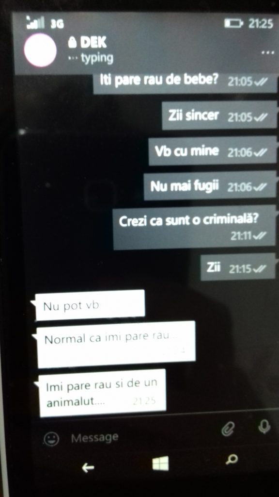 Continuam sa publicam conversatiile dintre cei doi amorezi, chiar daca seful IPJ Gorj minte cu nerusinare ca nu a mancat nici usturoi si nici nu a pus „botul” la savarina. Chiar avem probe…Deci, nu mai mintityi in declaratii mai ales pe cauzele penale caci va ingroapa probele depuse si la instanta pe civil, este un sfat prietenesc…(Cerasela N.).