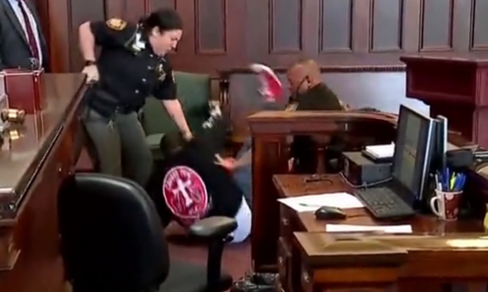 Momente şocante surprinse în sala de judecată: Doi fraţi l-au atacat pe criminalul mamei lor iar unul dintre ei a trebuit să fie oprit cu şocuri electrice