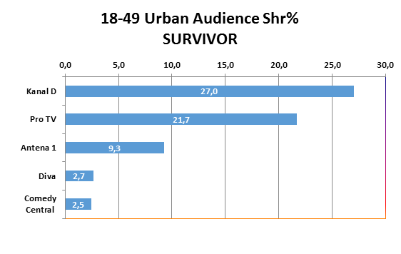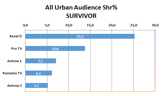 | SURVIVOR | Romania TV | 1,8 | 5,6 | 319 |