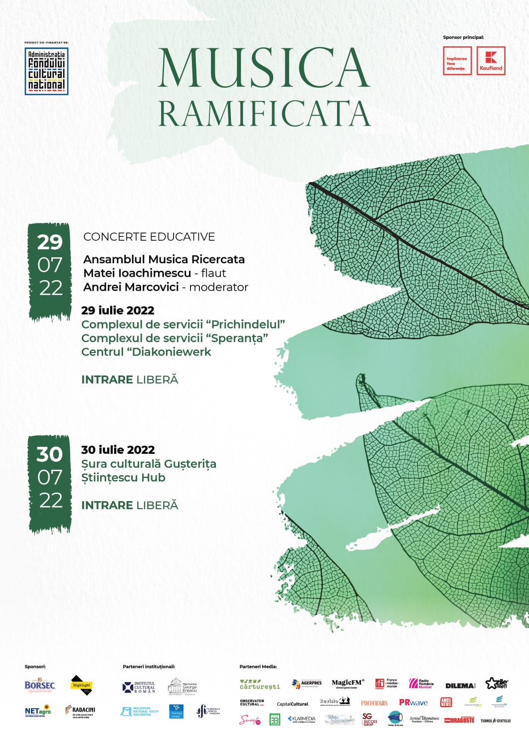 Parteneri instituționali: Institutul Cultural Român, Filarmonica George Enescu, Orchestra Națională de Tineret a Moldovei, Centrul Național de Artă “Tinerimea Română”, Filarmonica de Stat “Banatul” Timișoara