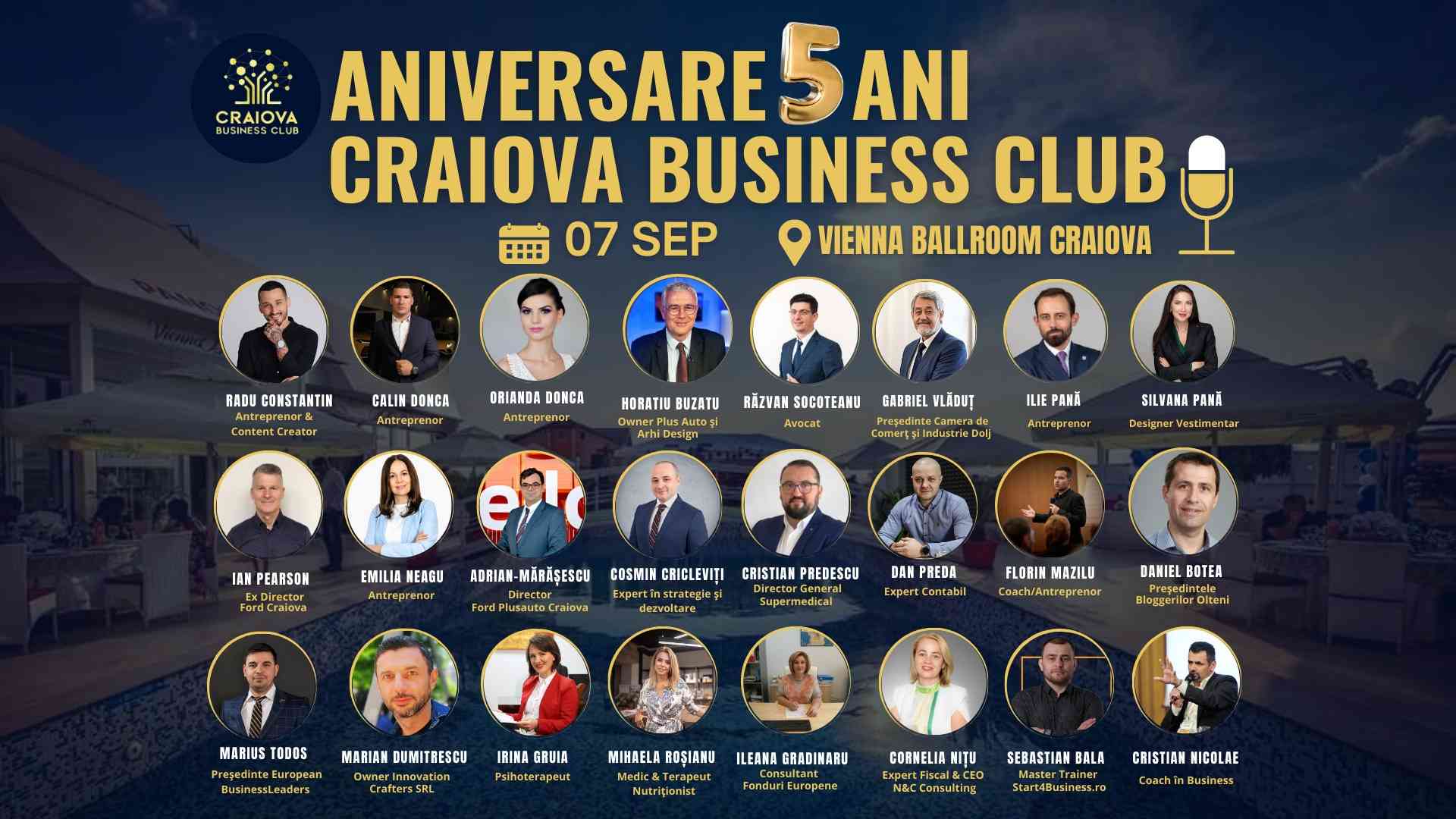 **Craiova, 7 septembrie 2024** – **Craiova Business Club**, comunitatea care a redefinit standardele de inovație și leadership în afaceri în Oltenia, marchează 5 ani de activitate remarcabilă. Pentru a celebra această ocazie specială, vă invităm la un eveniment exclusiv dedicat celor care inspiră și conduc schimbarea în comunitatea noastră.