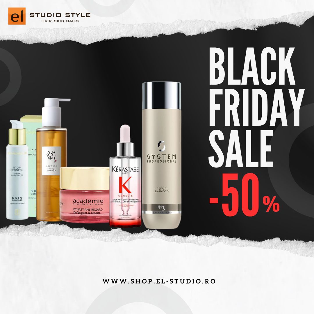 Black Friday a început oficial pe shop.el-studio.ro, aducând o lună întreagă de reduceri spectaculoase la mii de produse profesionale pentru păr, piele și unghii. În perioada 29 octombrie – 30 noiembrie 2025, clienții pot profita de discounturi de până la 50% la branduri premium, recunoscute în saloanele de înfrumusețare din întreaga lume.