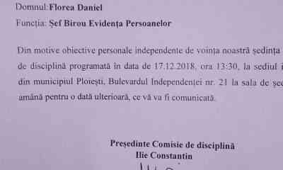 Circoteca continua! Sedinta publica a Comisiei de Disciplina din cadrul Politiei Locale Ploiesti de azi, orele 13.30 – s-a amanat iar fara temei legal din motive...